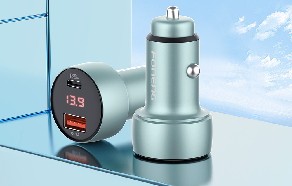 Ładowarka samochodowa Foneng C18 o mocy 48W zapewnia szybkie i efektywne ładowanie dzięki wsparciu wielu protokołów, takich jak QC3.0, PD30W, czy Huawei Super Fast Charging PPS. Wyposażona w dwa porty (USB-A i USB-C), umożliwia jednoczesne ładowanie dwóch urządzeń bez spadku prędkości. Wbudowany wyświetlacz cyfrowy pozwala na monitorowanie prędkości ładowania w czasie rzeczywistym, a solidna aluminiowa obudowa gwarantuje trwałość i skuteczne odprowadzanie ciepła. W zestawie znajduje się kabel USB-C do USB-C, co sprawia, że ładowarka jest gotowa do użycia od razu po wyjęciu z opakowania. Pasuje do większości modeli samochodów z napięciem od 12V do 24V, zapewniając niezawodne ładowanie w podróży.
